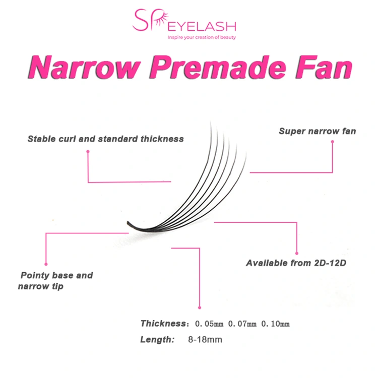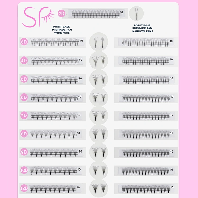 குறுகிய விசிறி: பரந்த ரசிகர்களை விட குறுகியது, இவை தடிமனான இயற்கை வசைபாடுகளைக் கொண்ட வாடிக்கையாளர்களுக்கு ஏற்றவை. அவை குழப்பத்தைத் தடுக்கின்றன மற்றும் ஒரு சீரான, அடர்த்தியான, மிகப்பெரிய மயிர் தோற்றத்தை உருவாக்குகின்றன, இது ஐலைனரின் விளைவைப் பிரதிபலிக்கிறது.